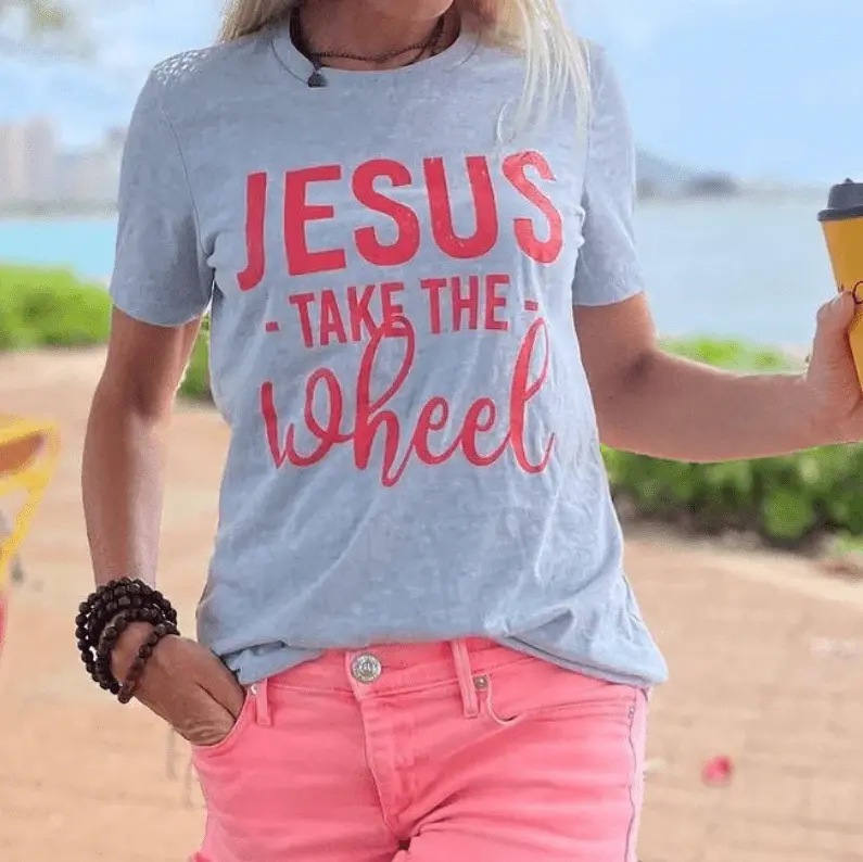 Jesus Take The Wheel pink type